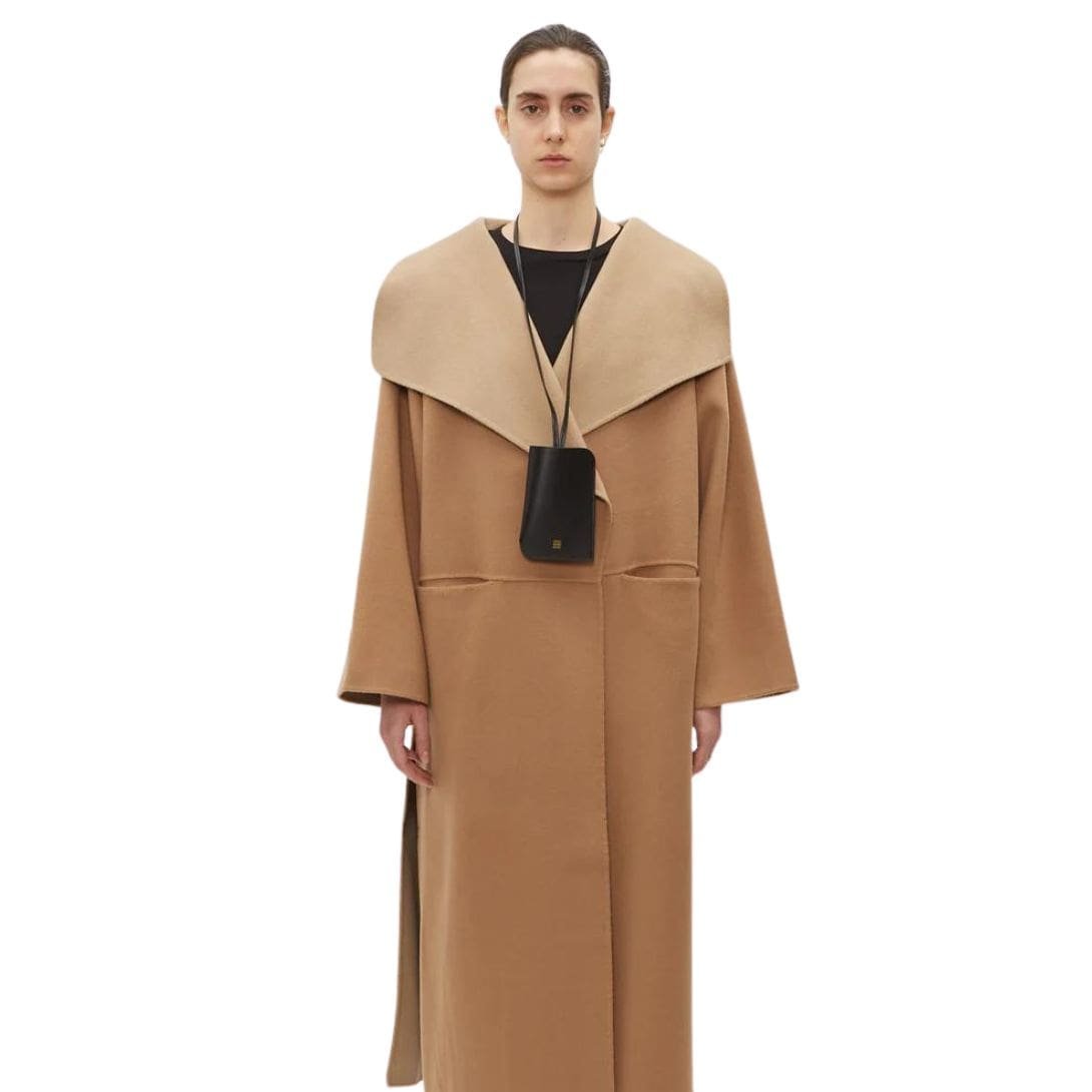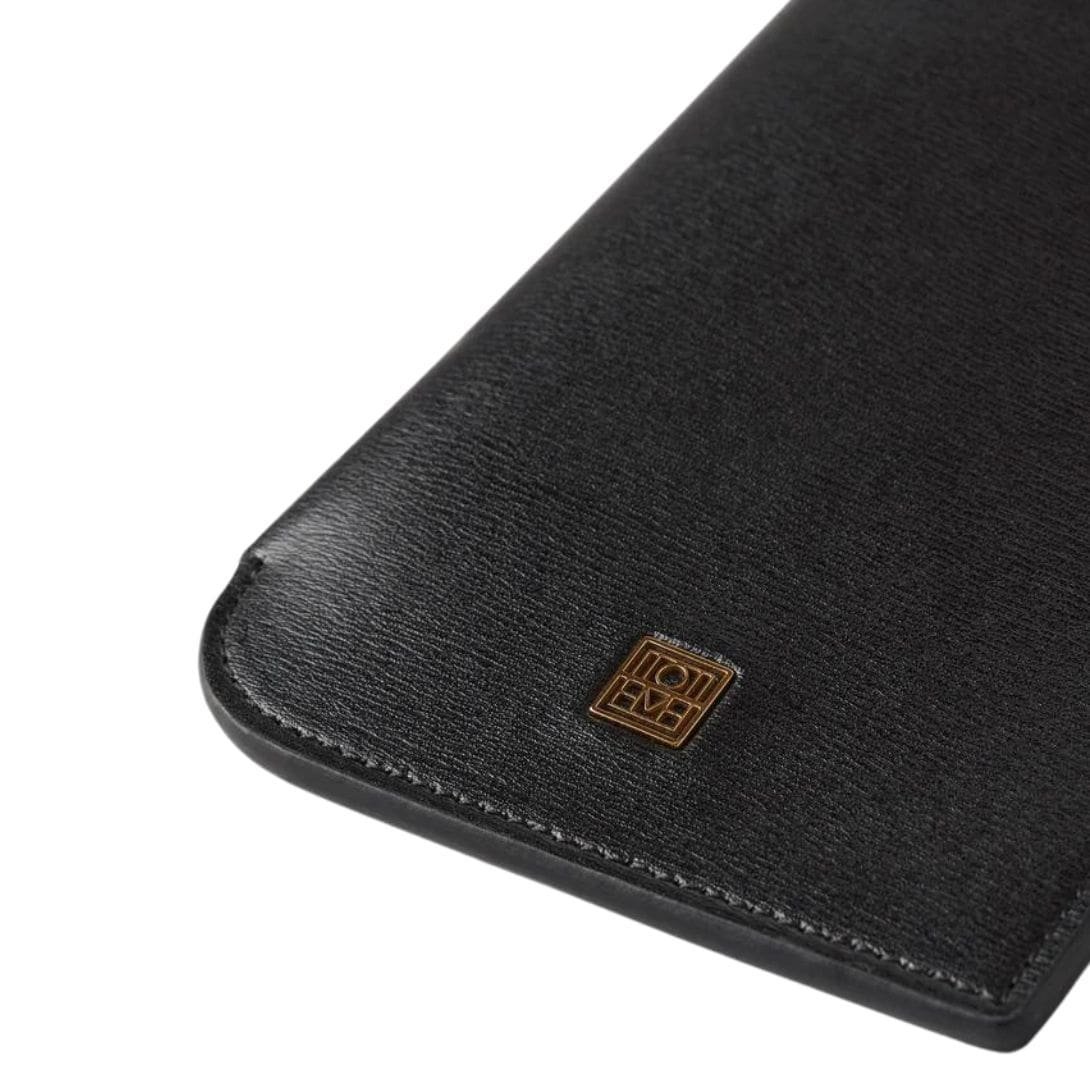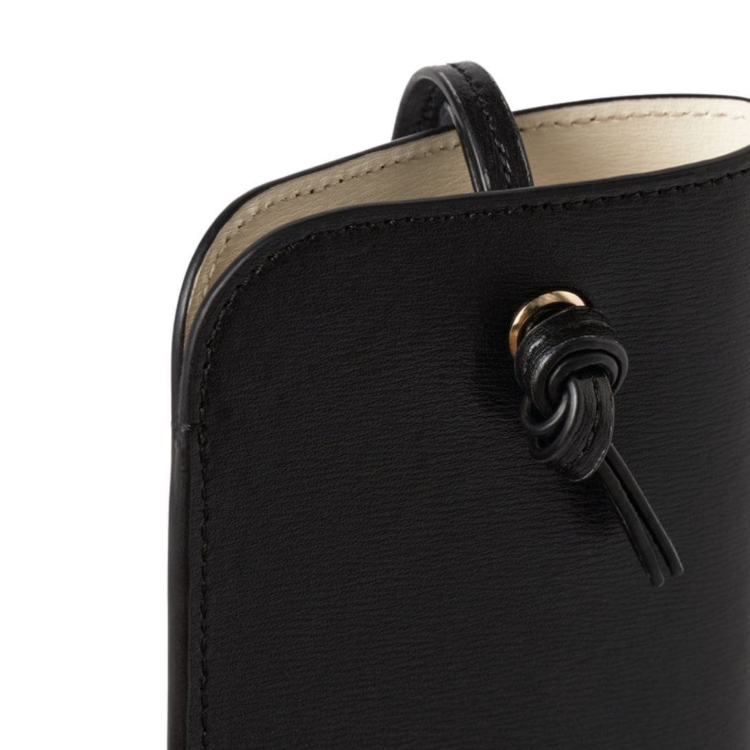 Introducing the La Garconne Totême Pocket Leather Pouch in black, featuring a knotted necklace strap crafted from classic smooth leather.