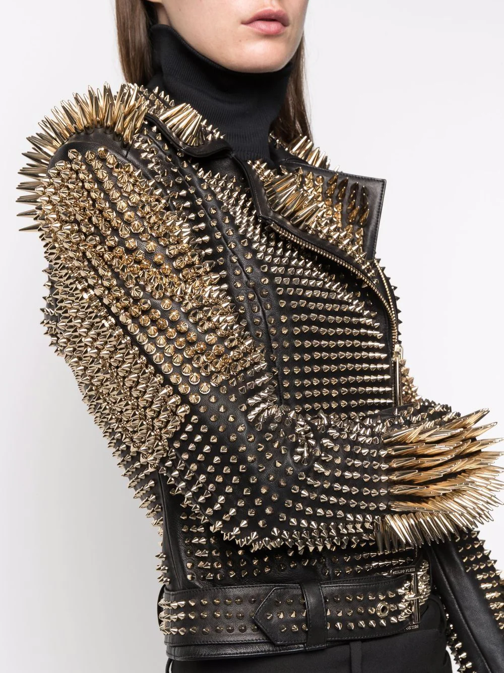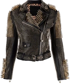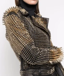 Long Studs Leather Jacket, Rock style