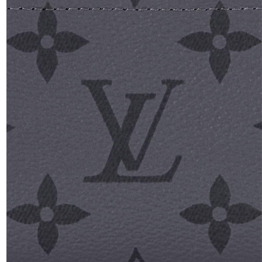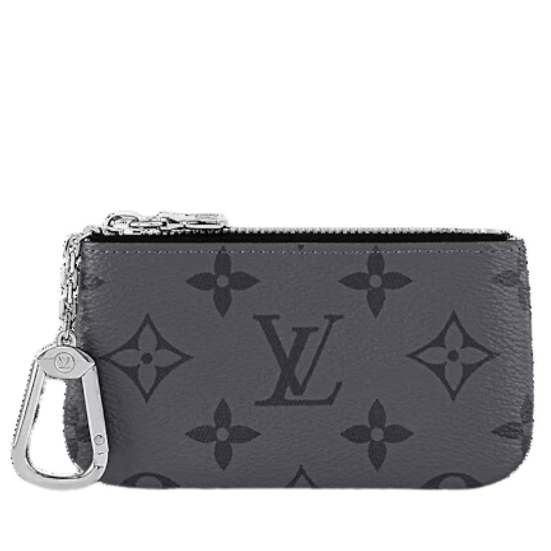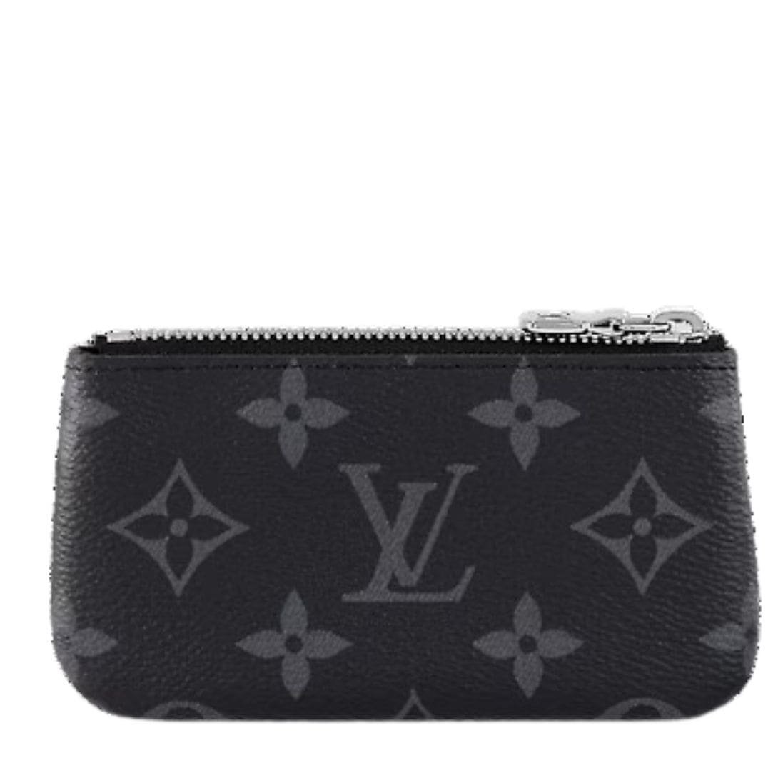 Introducing the sleek and versatile LOUIS VUITTON KEY POUCH , crafted with precision from Monogram Eclipse canvas on one side and lighter Monogram Eclipse Reverse on the other. With dimensions of 4.7 x 2.8 x 0.6 inches, this compact accessory is designed to carry coins, cards, banknotes, and keys with ease. Secured with an LV-engraved zip pull, it features a convenient chain and hook, allowing you to clip it to a bag or belt for effortless access.