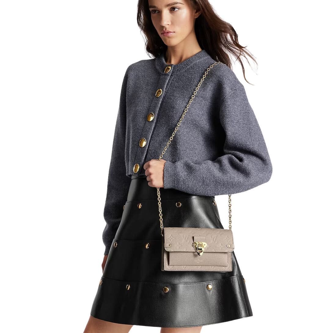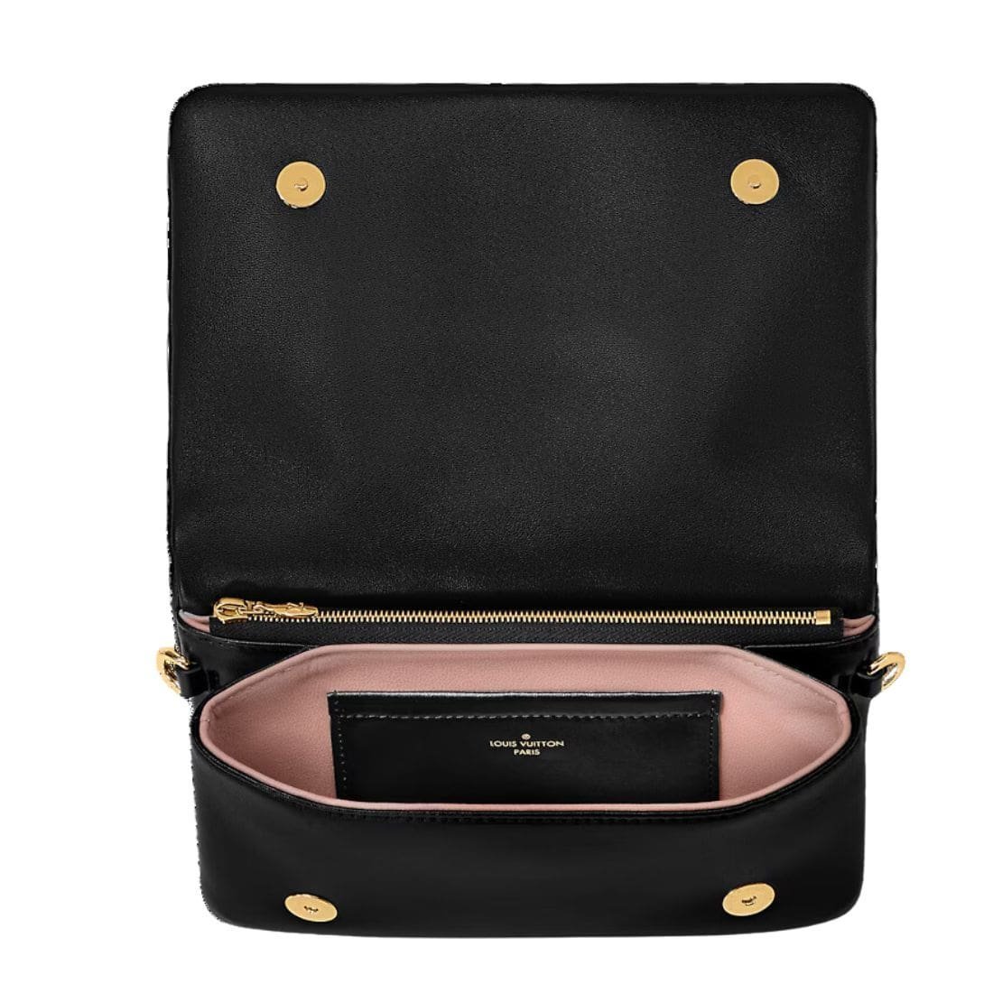 Versatility meets elegance with the removable chain, featuring a Louis Vuitton charm, offering multiple carry options. Wear it as a clutch for a refined evening look, sling it over the shoulder for casual chic, or loop it through a belt for a contemporary twist on the classic style.