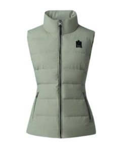 The Mackage Gisela Stretch Light Down Vest with Stand Collar is a sustainable, ultra-light down vest with a sleek stand collar, designed for a fitted silhouette. Its channel-quilted shell features a subtle stretch, allowing for easy movement. The flawless panel construction and an elastic waist back insert accentuate the cinched look, making it a stylish mid-season layering piece.