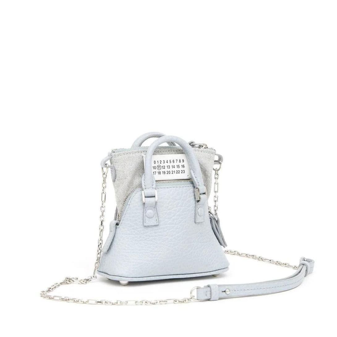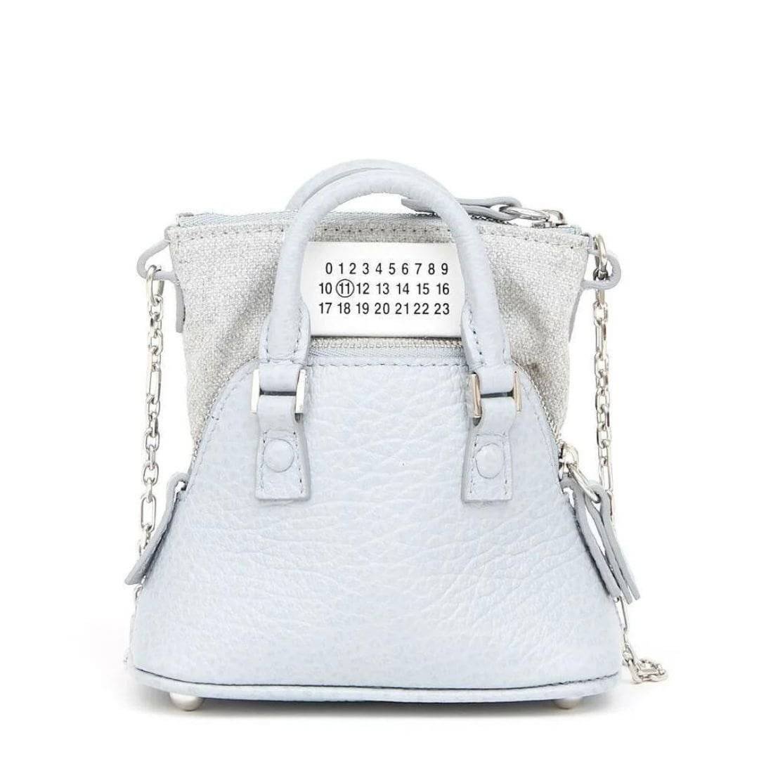 Crafted with precision in Italy, Maison Margiela 5AC Classique Baby top-handle bag, a charming addition to your accessory collection. The bag features a refreshing breeze blue hue, exuding sophistication and style.