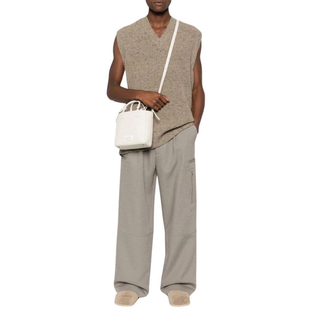 Introducing the Maison Margiela 5AC leather tote bag, meticulously crafted in Italy to epitomize sophistication and functionality. This versatile accessory comes in a light beige hue, exuding timeless elegance suitable for any occasion.