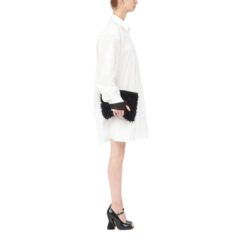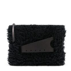 Crafted with precision in Italy, the Maison Margiela faux-fur clutch bag emerges as a distinguished accessory in classic black. Its opulent faux-fur design not only adds a layer of elegance but also a tactile allure to your ensemble. Offering versatility, it comes with a detachable shoulder strap and a convenient front handle, ensuring effortless transitions from day to evening.