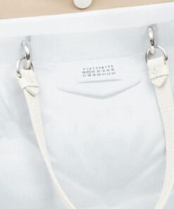 - Maison Margiela Glam Slam Trompe l’Oeil-Print Tote Bag Crafted in Italy Highlights: Color: Archive Beige/White Material: Canvas Print: Trompe l’Oeil Print Detailing: Appliqué Detail, Signature Numbers Motif Handles: Flat Top Handles Strap: Adjustable Detachable Shoulder Strap Closure: Concealed Press-Stud Fastening Interior: Main Compartment with Internal Zip-Fastening Pocket Composition: Outer: 65% Polyester, 35% Cotton