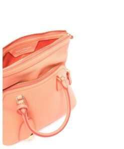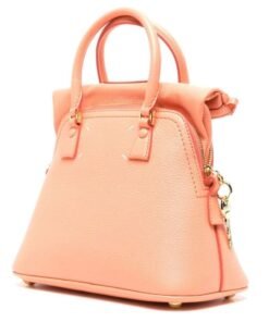 Presented in a vibrant orange hue for AW23, the Maison Margiela Mini 5AC Classique top-handle bag showcases the brand’s iconic silhouette with finesse. Crafted in Italy from textured-grained calf leather, it exudes a luxurious feel. The bag features Maison Margiela’s signature house motifs, including the distinctive four-stitch detail at the back and a numerical logo patch at the front, adding a touch of brand recognition.