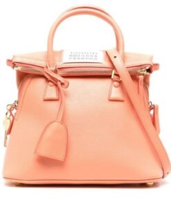 Presented in a vibrant orange hue for AW23, the Maison Margiela Mini 5AC Classique top-handle bag showcases the brand’s iconic silhouette with finesse. Crafted in Italy from textured-grained calf leather, it exudes a luxurious feel. The bag features Maison Margiela’s signature house motifs, including the distinctive four-stitch detail at the back and a numerical logo patch at the front, adding a touch of brand recognition.