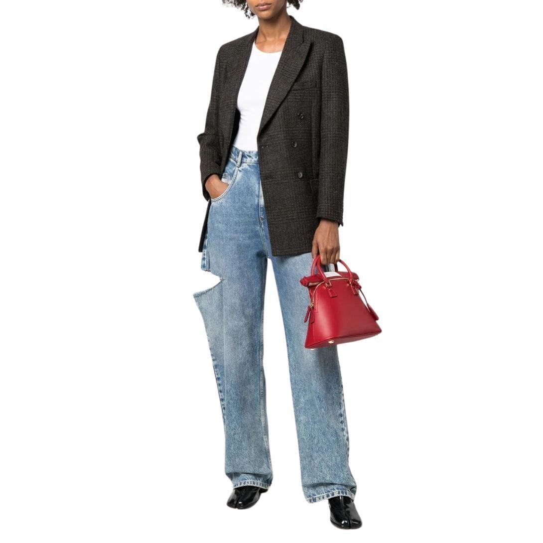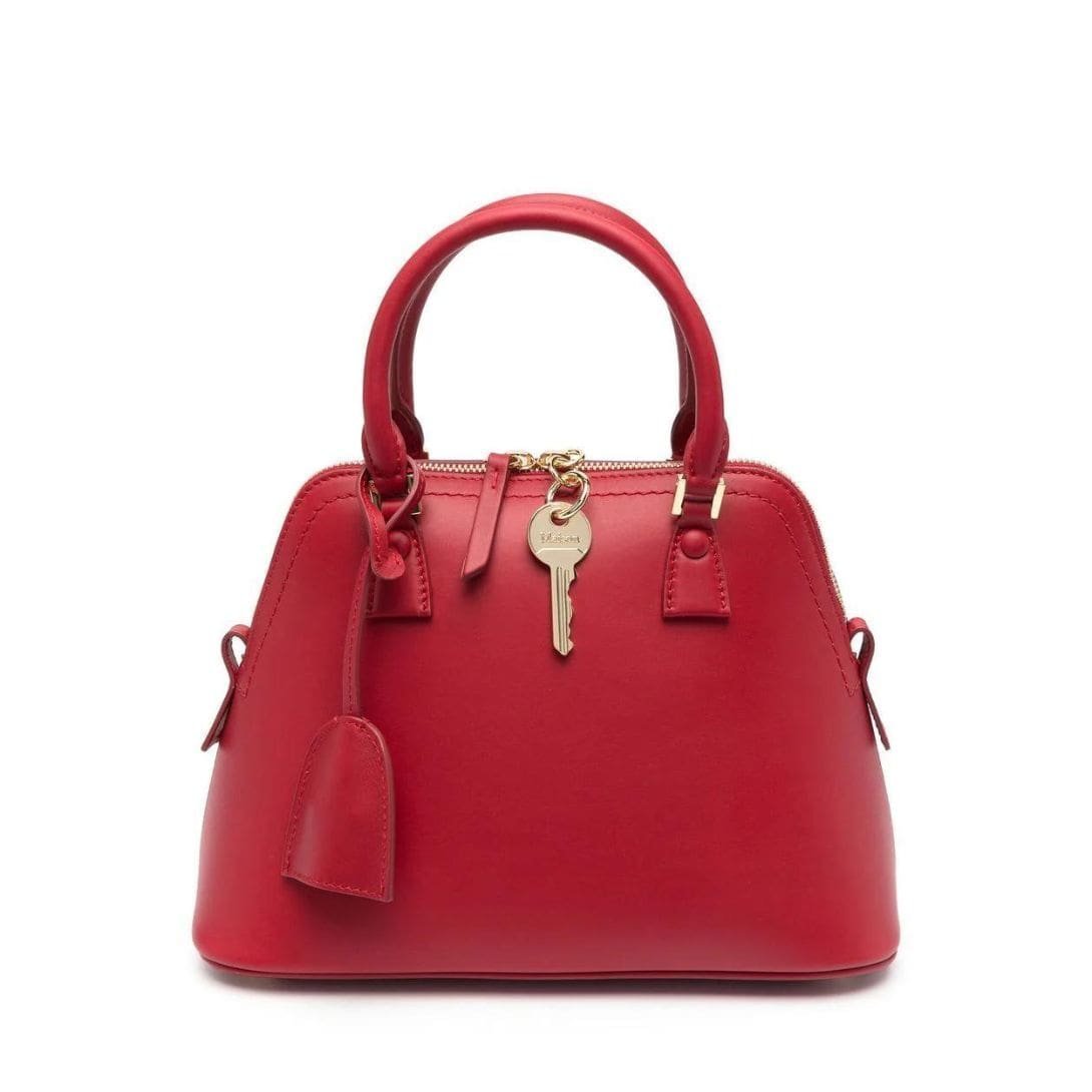Crafted in Italy, the Maison Margiela Mini 5AC tote bag epitomizes luxury with its meticulous attention to detail. Fashioned from exquisite dark red calf leather, this piece exudes sophistication. Its standout features include a charming detail and the signature four-stitch logo, epitomizing the brand’s distinctive aesthetic.