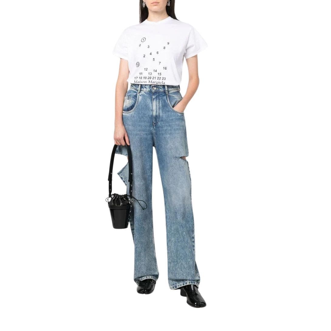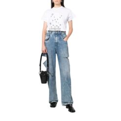Experience sophistication and practicality seamlessly intertwined in the Maison Margiela Mini Fire Leather Bucket Bag. Crafted in Italy, this bag boasts a sleek black exterior adorned with the brand’s signature logo print, adding a touch of distinction to your ensemble. The drawstring fastening ensures security while providing easy access to your essentials. Carry it effortlessly with the single circular top handle, designed for both style and comfort.