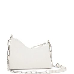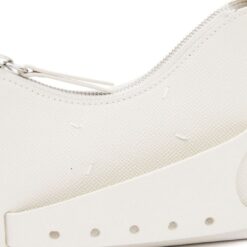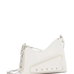 Embodying the label’s avant-garde aesthetic, the Snatched bag stands out with its arched, asymmetric shape. This micro version, crafted in Italy from white-grained leather, features a perforated front handle that lends its name to the design. The iconic four-stitch logo adorns the front, adding a signature touch.