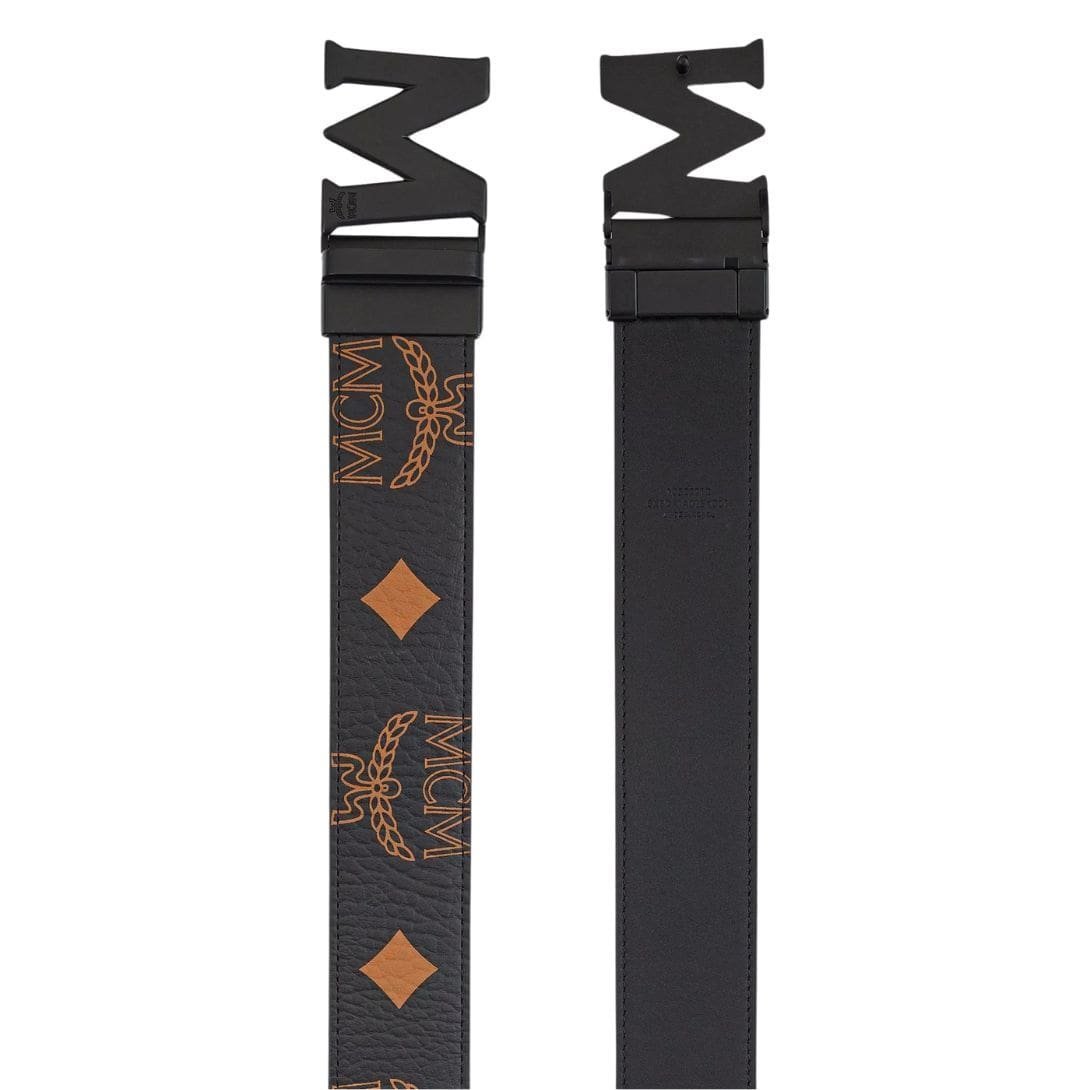 MCM CLAUS MATTE M REVERSIBLE BELT 1.75” IN MAXI VISETOS BLACK