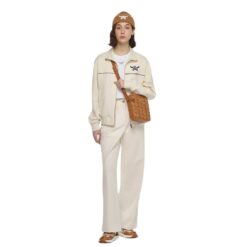 The meticulous craftsmanship is evident in every detail of its design. Classic cognac Visetos monogram canvas, synonymous with the brand’s heritage and sophistication, forms the body of the bag, exuding timeless allure and refinement. Natural nappa leather trim adds a luxurious touch, framing the silhouette with understated elegance. A 24k gilded brass logo plate serves as a symbol of authenticity and quality, elevating the aesthetic appeal of the accessory.