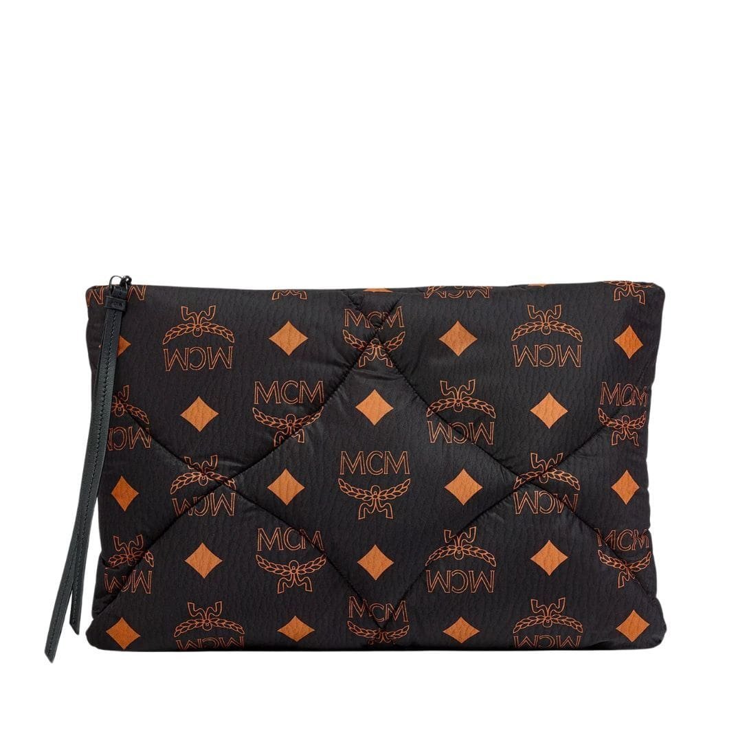 MCM LARGE AREN QUILTED POUCH IN MAXI MONOGRAM NYLON BLACK
