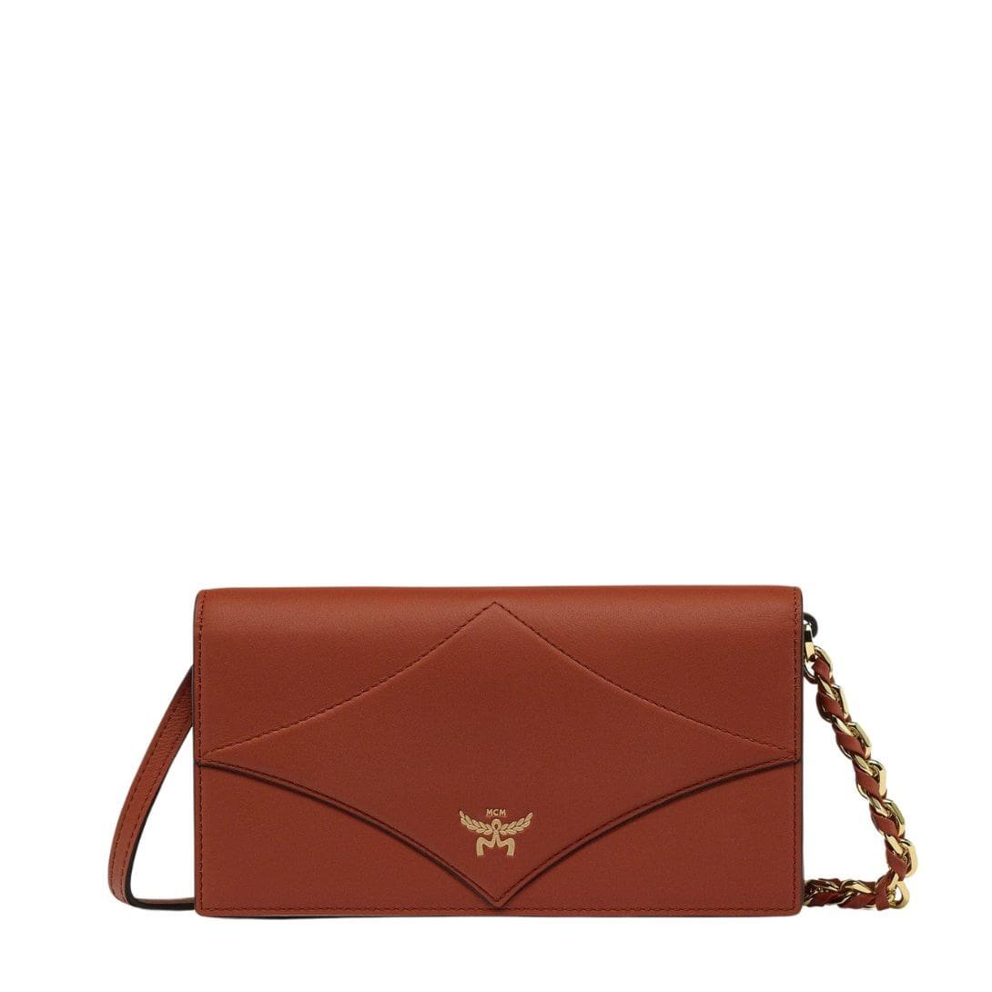 MCM LARGE DIAMOND CHAIN WALLET IN SPANISH CALF LEATHER BROWN