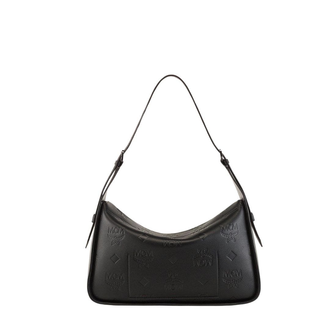 MCM MEDIUM AREN FLAP HOBO BAG IN EMBOSSED MONOGRAM LEATHER BLACK