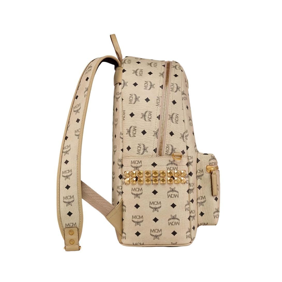 MCM MEDIUM STARK SIDE BACKPACK IN VISETOS BEIGE & BLACK