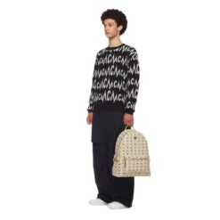 Experience the epitome of luxury and style with the MCM Medium Stark Side Backpack In Visetos Beige & Black. by MCM, meticulously crafted from the brand’s signature Visetos canvas and Nappa leather in a sophisticated beige hue. This edition of the iconic Stark backpack further elevates its timeless design, combining elegance with functionality for the modern adventurer.