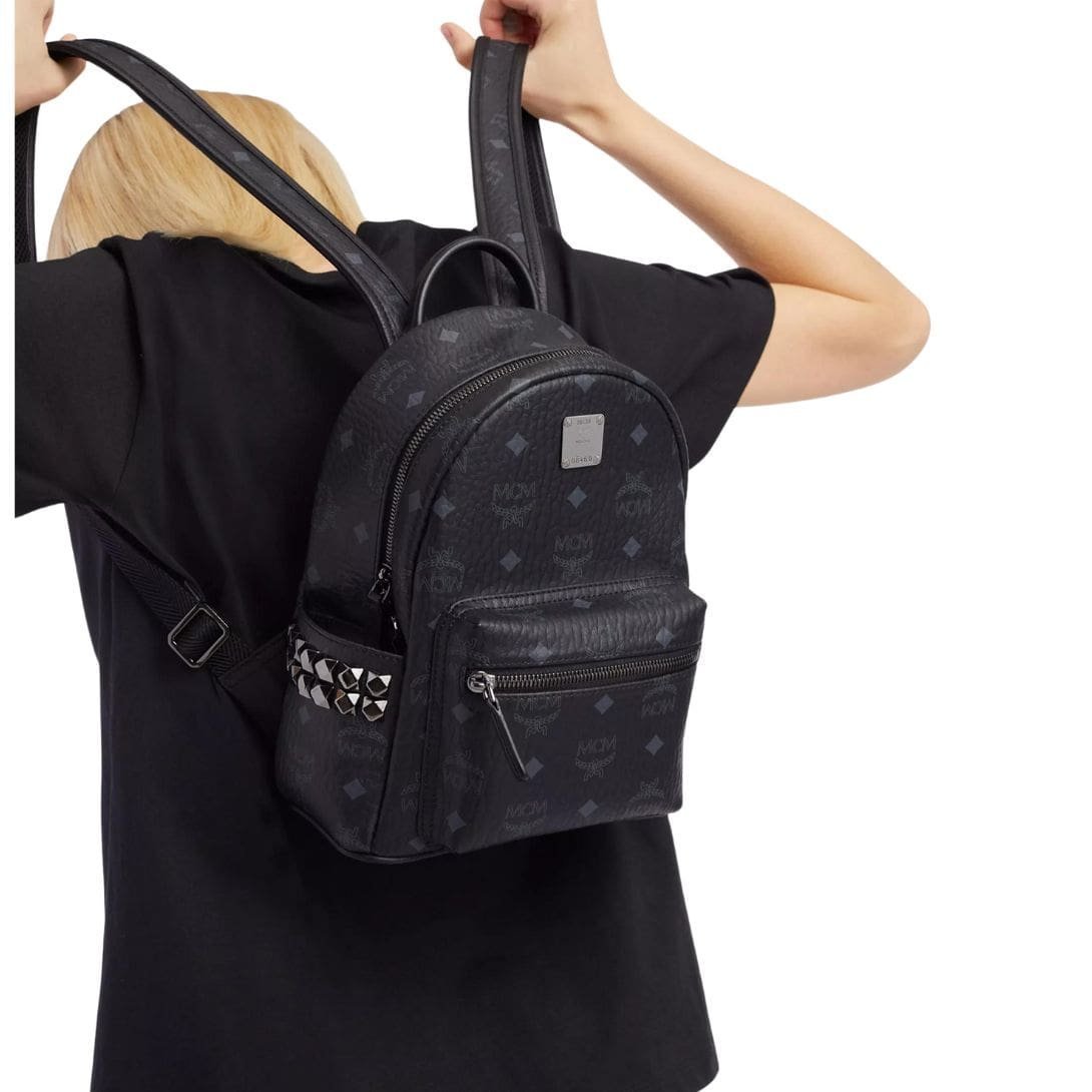 MCM MINI STARK SIDE STUDS BACKPACK IN VISETOS BLACK