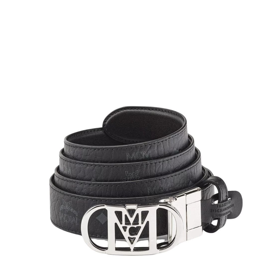 MCM MODE TRAVIA REVERSIBLE BELT 1” IN EMBOSSED LEATHER BLACK
