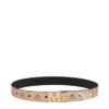 As per tradition, the logo buckle of the Claus belt is detachable, allowing for a customizable fit tailored to the wearer’s precise measurements. Crafted from cobalt metal, the MCM logo buckle and hardware serve as a striking focal point, exuding an air of luxury and refinement that complements the belt’s overall aesthetic.
