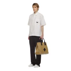 MCM REVERSIBLE DIAMOND TOTE IN CANVAS LEATHER MIX BEIGE