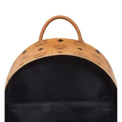 Experience the epitome of luxury and style MCM Small Stark Side Studs Backpack In Visetos Cognac. by MCM, meticulously crafted from the brand’s signature Italian Visetos adorned with smooth nappa leather accents in classic cognac. This exquisite backpack combines elegance with functionality, making it the perfect companion for the modern adventurer.