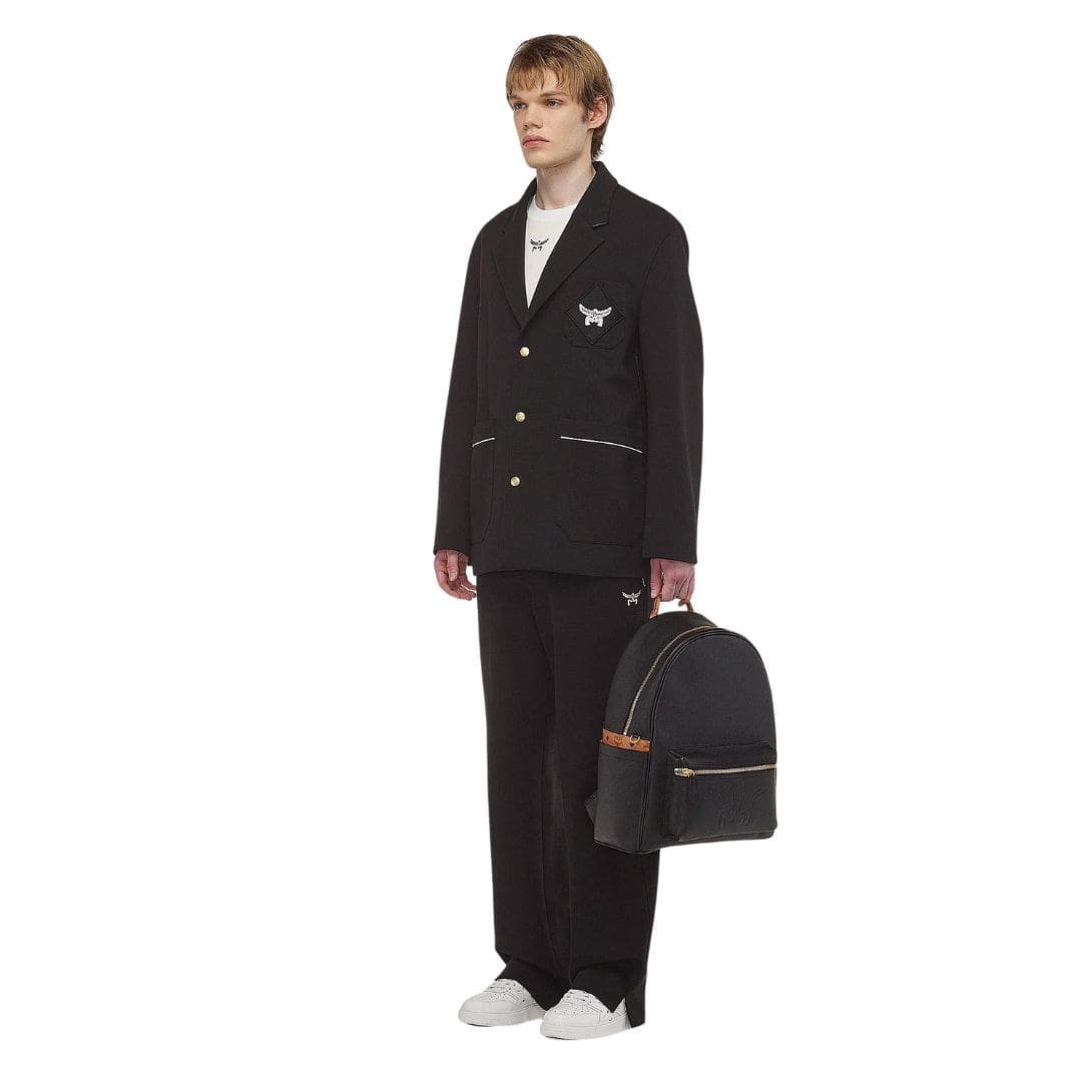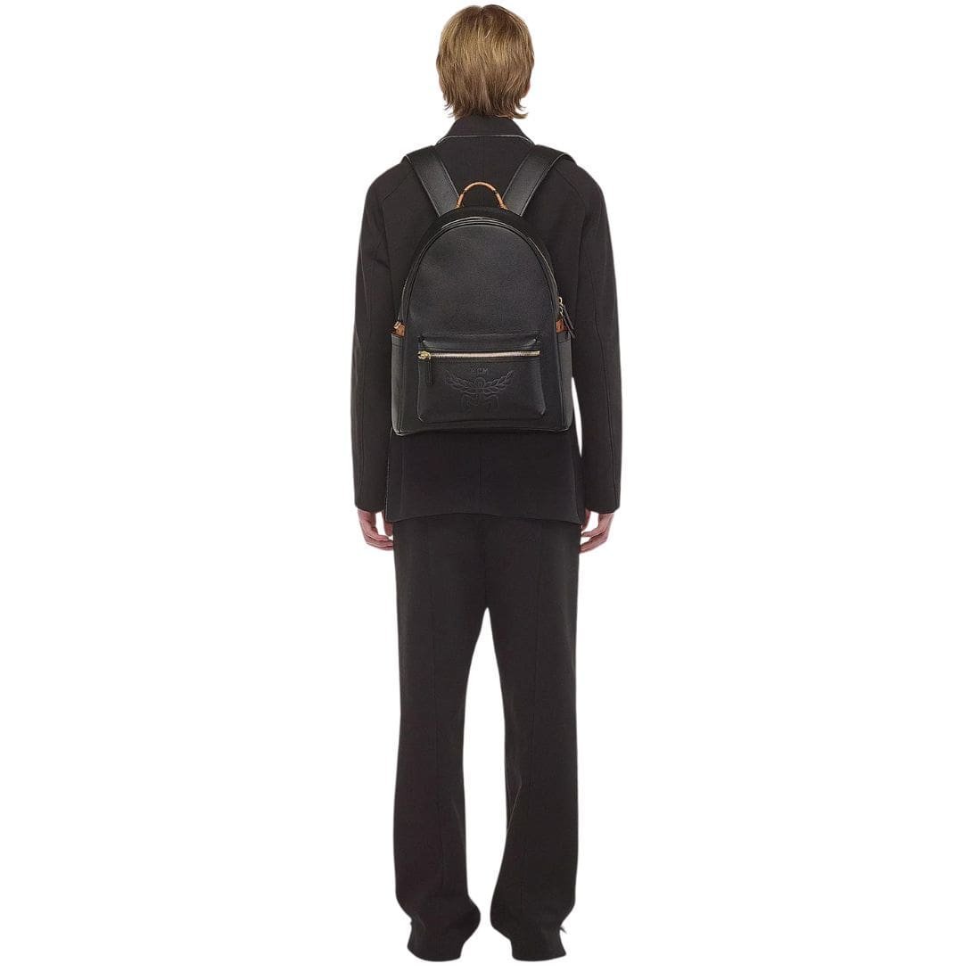 MCM STARK BACKPACK IN EMBOSSED LOGO LEATHER BLACK