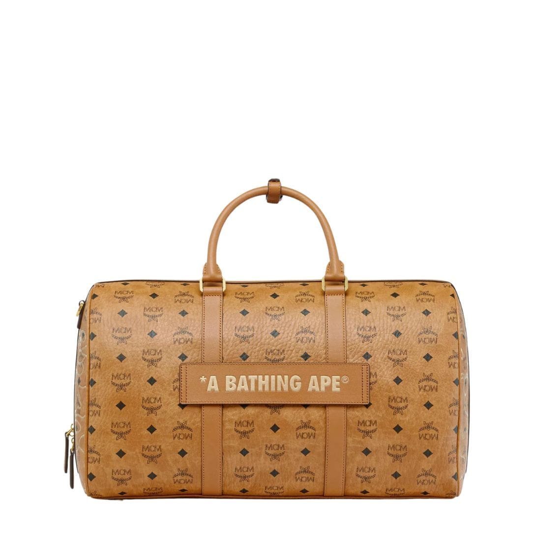 MCM X BAPE OTTOMAR WEEKENDER BAG IN VISETOS COGNAC