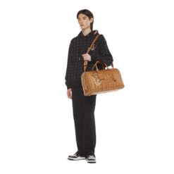 Made in South Korea, the MCM x BAPE Ottomar Weekender Bag in Visetos Cognac exemplifies the perfect blend of luxury craftsmanship and contemporary streetwear design. Ideal for jet-setters and fashion-forward individuals, this bag is not just a functional travel accessory but a statement piece that reflects a rich cultural heritage and innovative style. Whether you’re heading on a weekend getaway or a longer journey, this weekend bag offers both practicality and a unique flair, making it an essential addition to your travel gear.