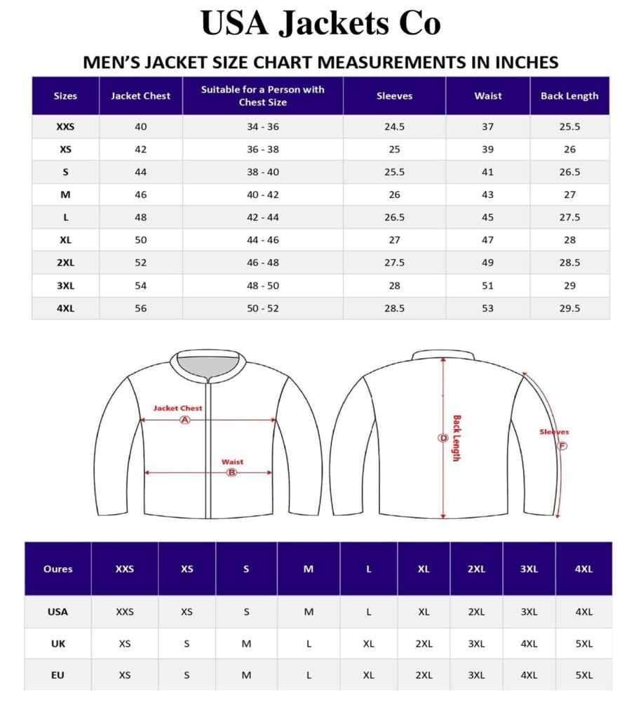 - For custom orders or inquiries, reach out to us via chat support or email at sales@usajacketsco.com