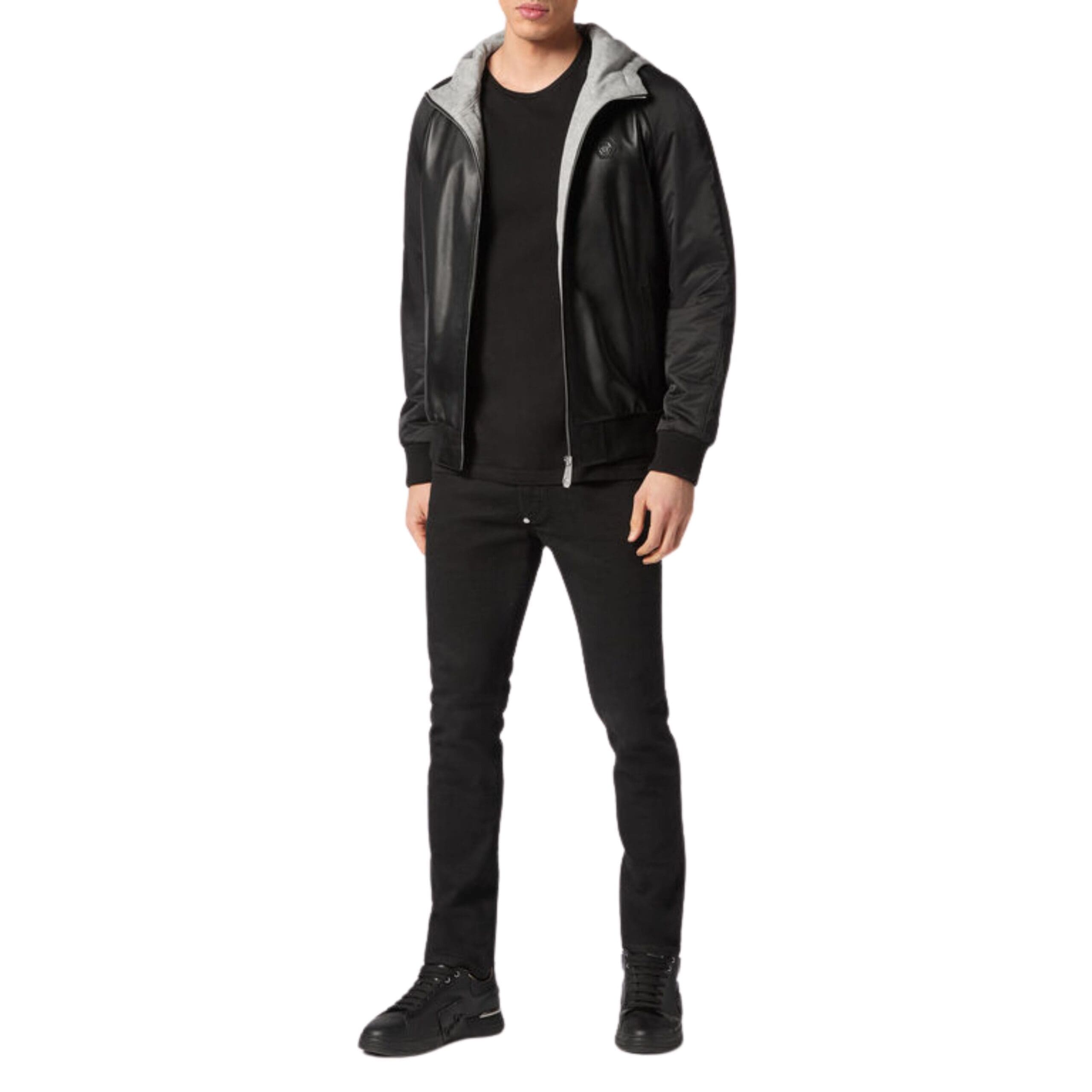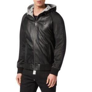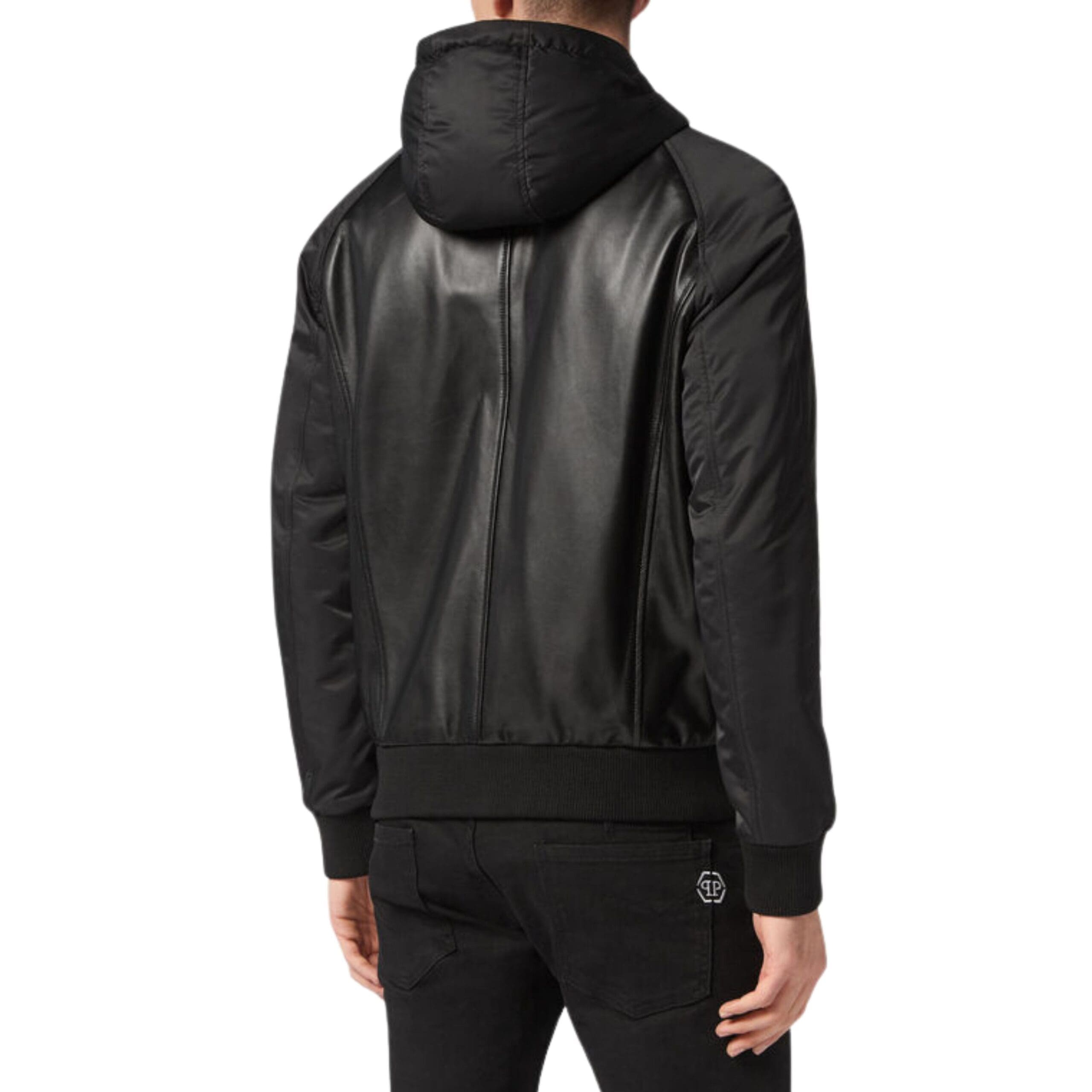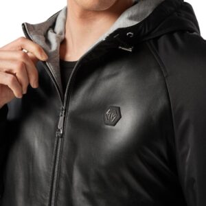 PHILIPP PLEIN LEATHER HOODED JACKET