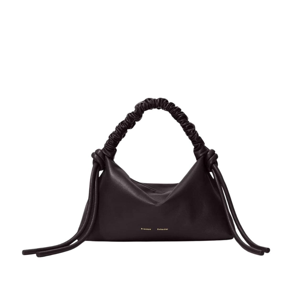 Immerse yourself in the understated charm of the Proenza Mini Drawstring Bag Black, meticulously crafted from smooth leather to embody a compact yet effortlessly slouchy silhouette. Dressed in timeless black, this bag exudes versatility and sophistication, making it the perfect companion for any occasion.