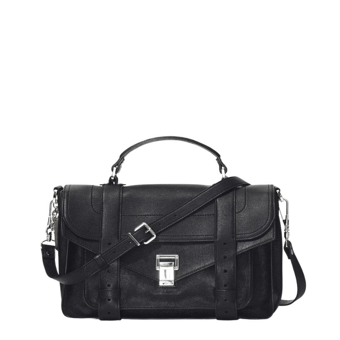 Drawing inspiration from the Proenza PS1 Medium Bag In Suede Black. utilitarian charm of traditional workwear satchels, the PS1 Medium Bag is a masterclass in both form and function. As the second largest member of the esteemed PS1 family, this leather iteration seamlessly blends practicality with effortless style, promising a timeless accessory for the discerning individual.