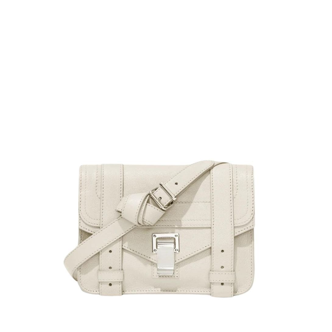 In summary, the PS1 Mini Crossbody Bag in Off-White Lambskin Leather is a versatile and stylish accessory that seamlessly blends form and function. With its impeccable craftsmanship, thoughtful design features, and understated elegance, it is sure to become a cherished staple in your wardrobe for years to come.