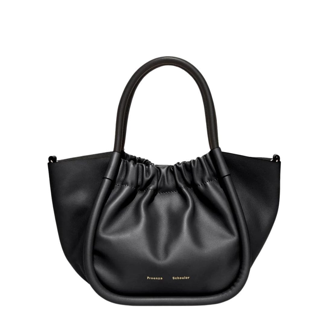 Crafted with meticulous attention to detail, the Proenza Small Ruched Crossbody Tote Black. epitomizes sophistication and functionality in equal measure. Merging timeless elegance with contemporary design, this accessory is a testament to refined luxury.