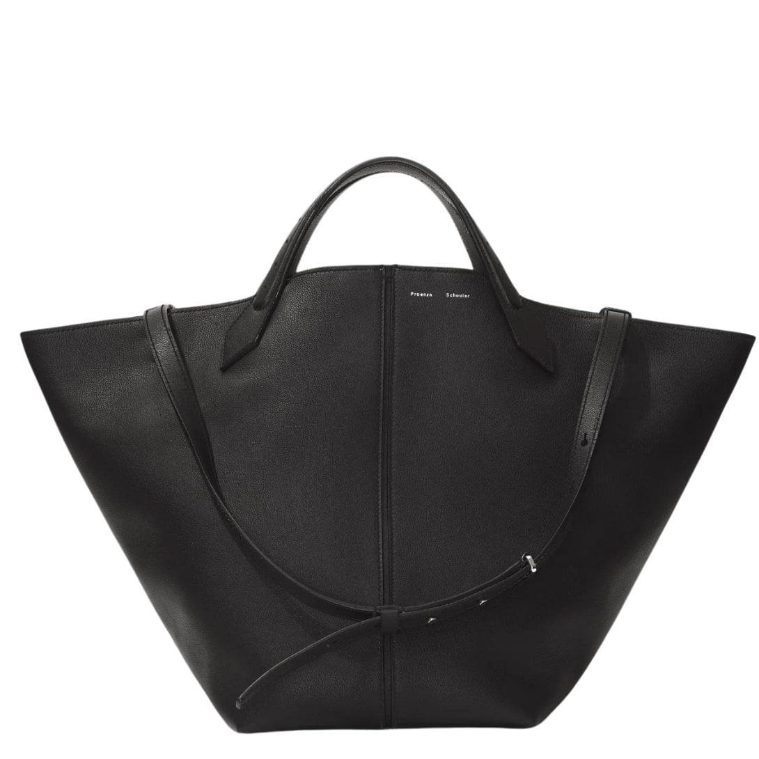 The Fall 23 Runway Collection PROENZA XL Chelsea Tote Black. unveils a captivating fusion of sophistication and functionality, epitomized by Look 14’s centrepiece: the XL Chelsea Tote. Crafted meticulously from supple calfskin leather, this exquisite accessory exudes an aura of understated luxury.