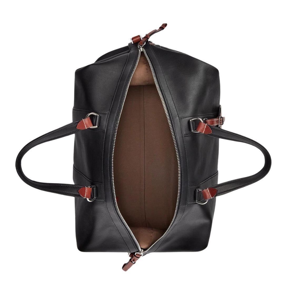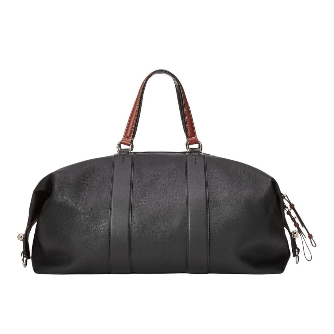 At first glance, the duffel exudes an aura of understated opulence. The supple calfskin leather, sourced from the finest tanneries, is impeccably smooth to the touch, promising durability and longevity. The rich, deep hues of the leather evoke a sense of prestige, while subtle embossed branding discreetly adorns the exterior, a symbol of the legacy behind the name.
