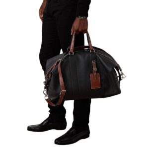 The silhouette of the duffel is sleek and streamlined, marrying classic aesthetics with modern functionality. Generously sized yet effortlessly elegant, it offers ample space for all essentials, making it an ideal companion for weekend getaways or business trips. Reinforced leather handles, meticulously stitched and ergonomically designed, ensure comfort during travel, while a detachable shoulder strap provides versatility in carrying options.