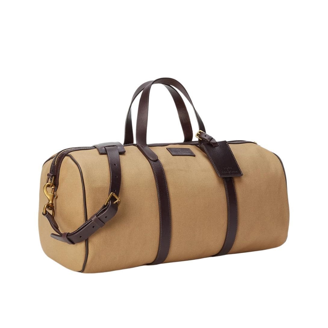 Emblazoned with the iconic Ralph Lauren logo, discreetly embossed or engraved onto the leather trim, the duffel bag serves as a symbol of prestige and refinement. Whether jetting off on a weekend retreat or embarking on a globetrotting adventure, the Ralph Lauren Leather-Trim Canvas Duffel is the ultimate travel companion, marrying luxurious design with unparalleled functionality in a way that only Ralph Lauren can achieve.