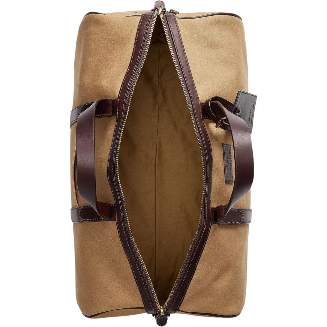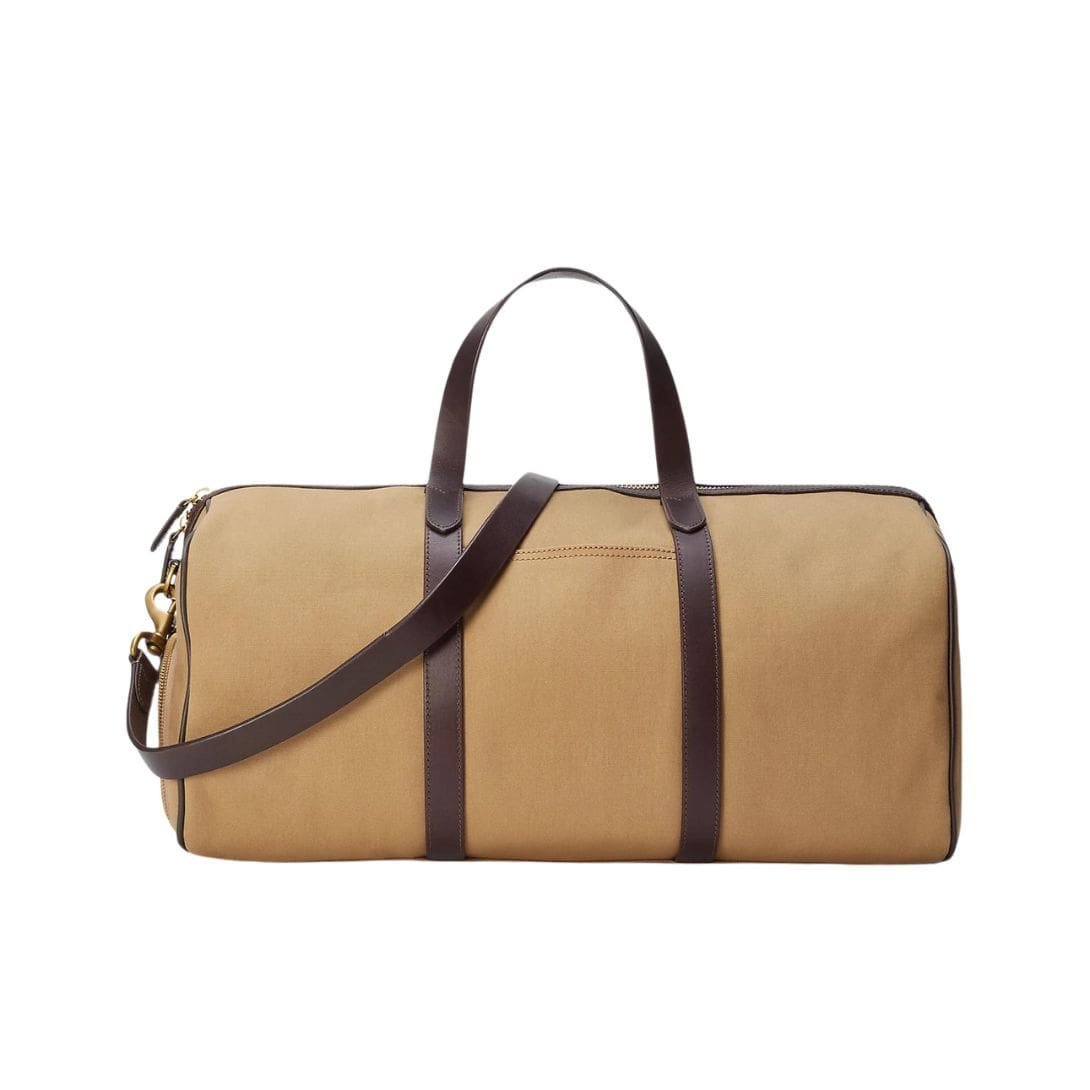 At first glance, the duffel exudes a sense of understated luxury with its classic silhouette and impeccable construction. The canvas material, meticulously chosen for its durability and aesthetic appeal, provides a sturdy foundation for the bag while exuding a sense of rugged sophistication. The canvas is expertly treated to enhance its resilience, ensuring that the duffel ages gracefully over time, developing a unique patina that tells the story of its travels and adventures.