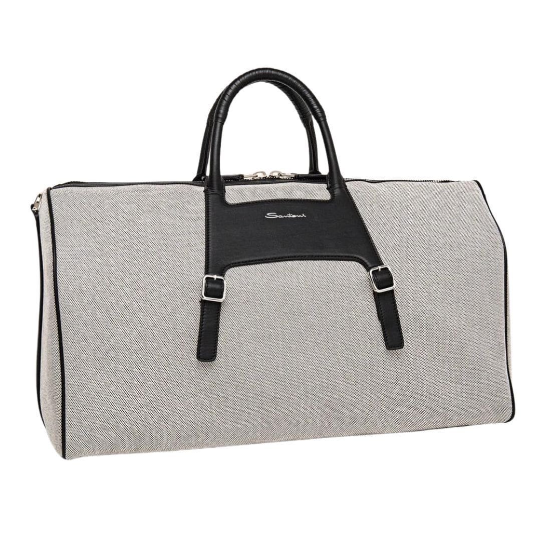 SANTONI BLACK LEATHER AND CANVAS MEDIUM WEEKEND BAG