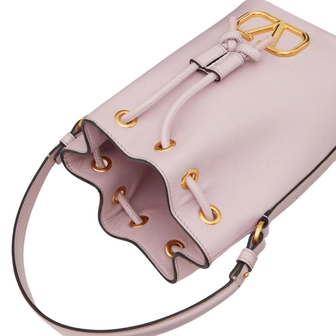 Introducing the Valentino Garavani mini VLogo Signature Bucket Bag in nappa leather, meticulously crafted in luxurious Nappa leather. This exquisite piece offers versatility with its removable shoulder strap and handle, allowing it to be styled as a crossbody, shoulder accessory, or handheld handbag.