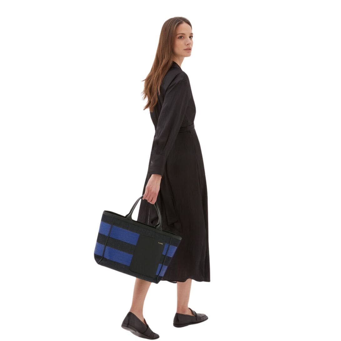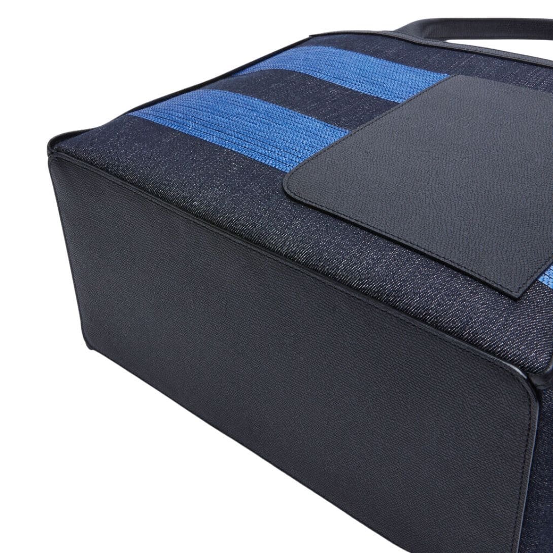 VALEXTRA TOTE BAG DENIM STRIPE MEDIUM