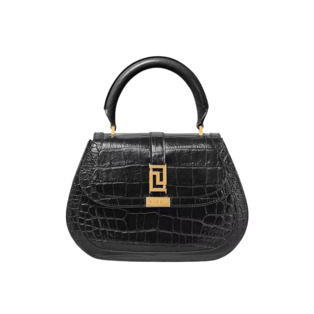 VERSACE CROC-EFFECT GRECA GODDESS TOP HANDLE BAG