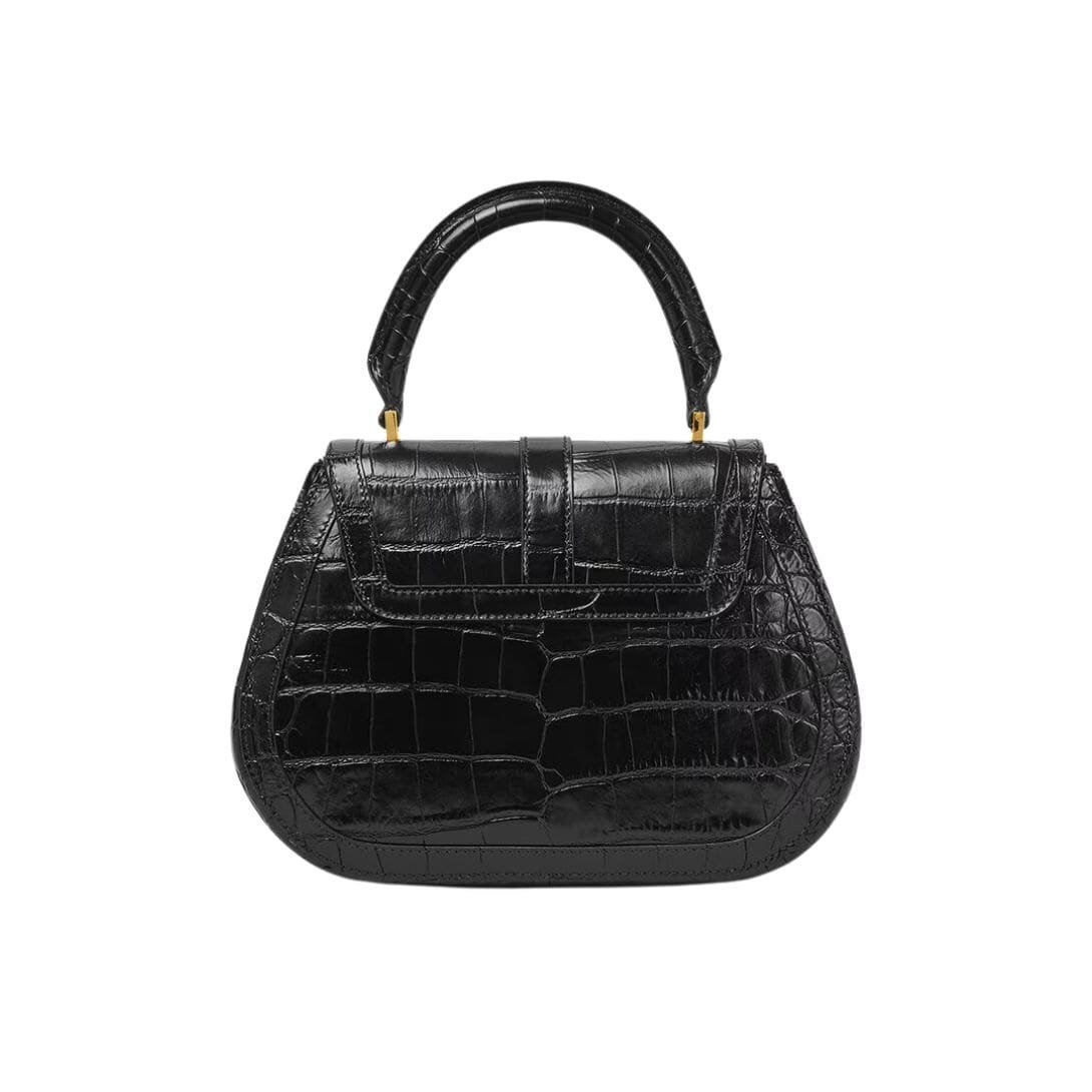 The Versace Croc-Effect Greca Goddess Top Handle Bag epitomizes opulence and sophistication, a fusion of timeless design and contemporary allure. Crafted with meticulous attention to detail, this exquisite accessory embodies the iconic essence of the Versace brand.