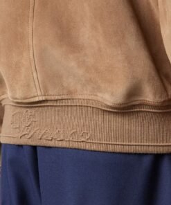 The silhouette of the jacket is tailored to perfection, striking a balance between form and function. With its relaxed yet structured fit, it effortlessly complements the body, providing both comfort and style. The ribbed collar, cuffs, and hemline enhance the jacket’s aesthetic appeal, while also offering a snug and secure fit.